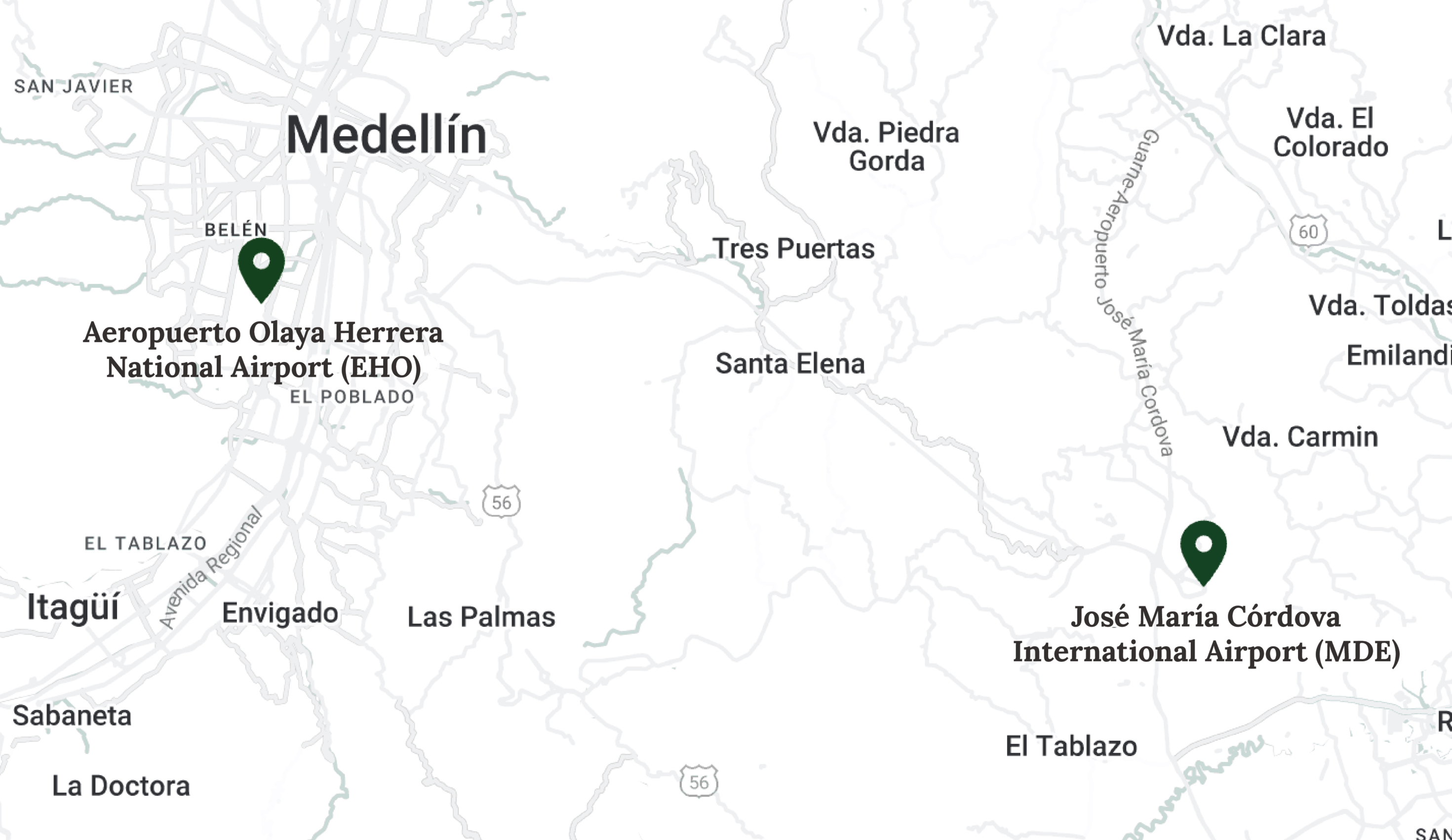 airport (EOH) is only 10 minutes from the El Poblado area of Medellin.