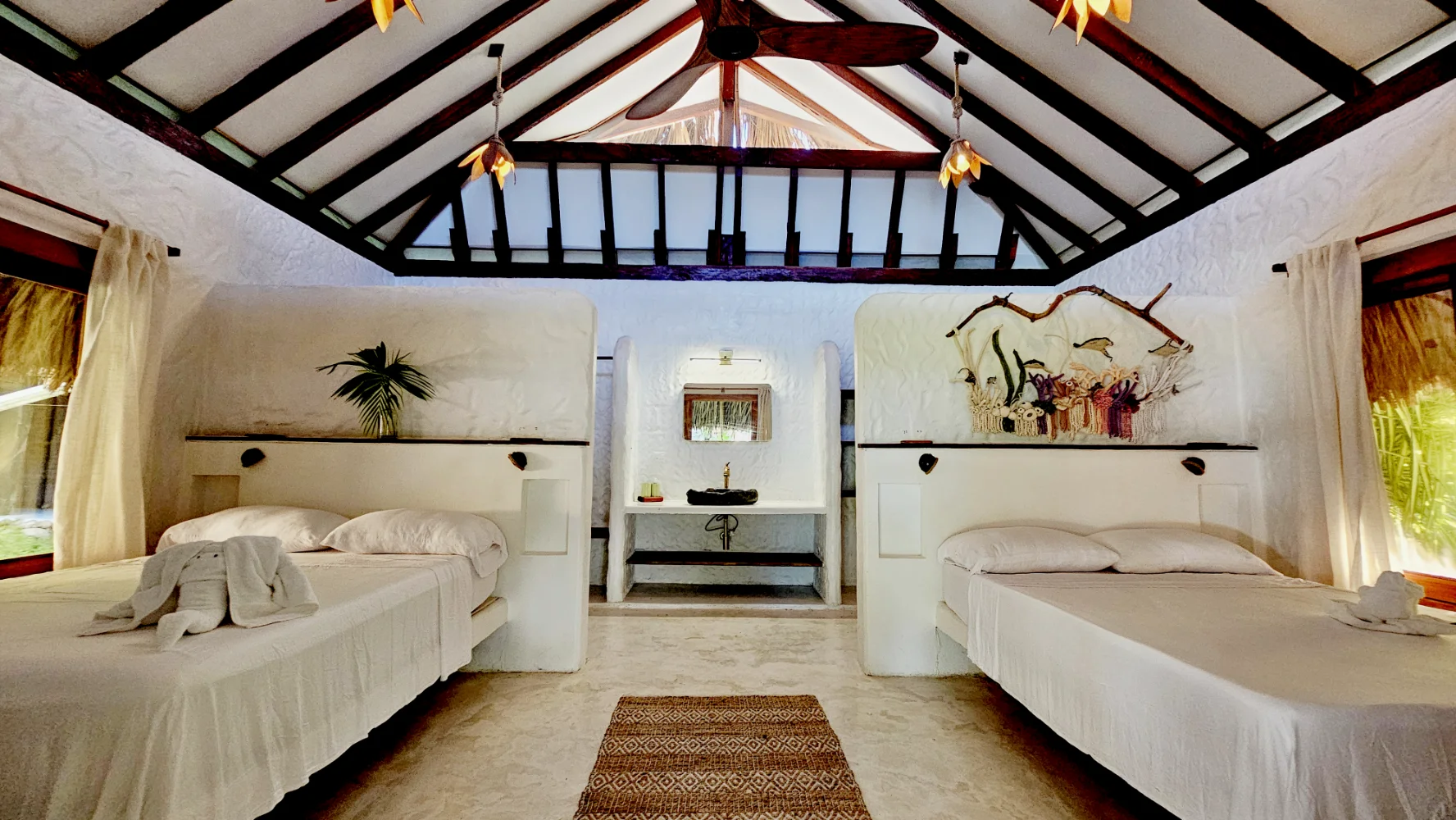 Our spacious Eco-Bungalow Suites offer a tranquil sanctuary for two guests, blending sustainable design with natural comfort. Each suite features dual sleeping arrangements, perfect for couples, friends, or solo travelers seeking extra space to unwind and restore.